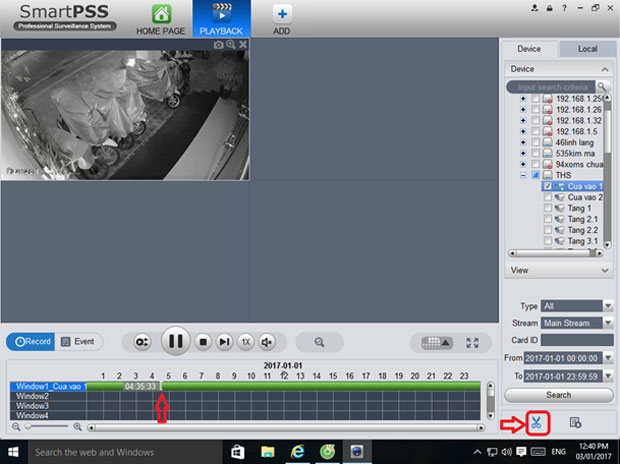 Bước 5: Ta chọn lần lượt thời gian bắt đầu sau đó chọn biểu tượng cái kéo.
