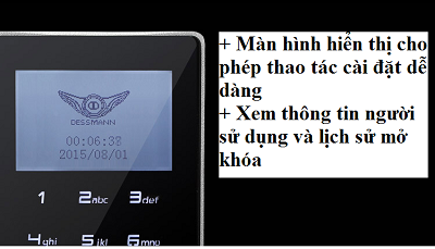 Dessmann là dòng khóa điện tử duy nhất tại Việt Nam có sử dụng màn hình hiển thị với hệ điều hành ao rất thuận tiện cho người dùng. Màn hình hiển thị Khóa Dessmann có chức năng lưu và xem lại lịch sử nên dễ dàng quản lý lịch sử mở cửa cửa từng thành viên