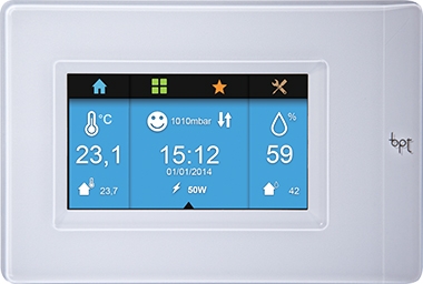 - Hệ thống cho thấy rõ ràng, trên các thiết bị đầu cuối màn hình cảm ứng TS7 hoặc TS10, mức tiêu thụ hiện tại và được ghi lại của các tải điện được kiểm soát khác nhau, bên cạnh các thiết bị nước và khí đốt.