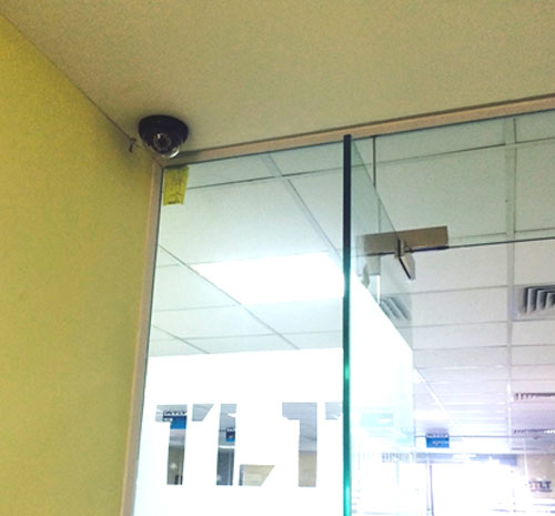 Camera giám sát gắn bên ngoài để ghi lại quá trình ra vào của nhân viên và khách hàng. Nhiều doanh nghiệp hiện nay còn lắp loại camera Ip hiện đại có chức năng cảnh báo đột nhập bảo vệ doanh nghiệp cực kì hiệu quả.